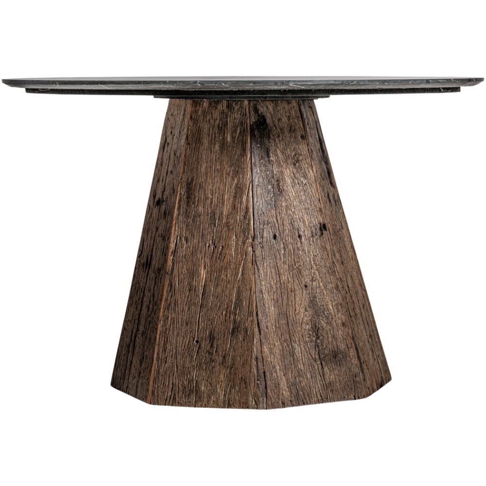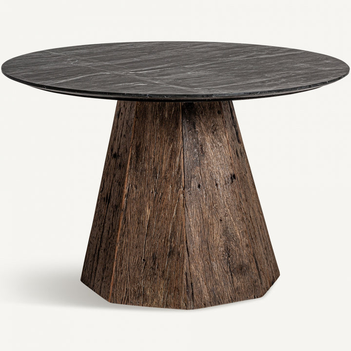 Lo stile vintage living unisce eleganza senza tempo e materiali naturali, perfetto per arredare ambienti sofisticati e accoglienti. Questo stile valorizza il fascino del marmo nero e la bellezza autentica del legno naturale, rendendolo ideale per una sala da pranzo raffinata. Questo tavolo da pranzo rotondo è dotato di una superficie in marmo naturale, che dona luminosità e pregio, sostenuta da una base a gamba singola in legno scuro lavorato artigianalmente. Con un diametro di 120 cm e uno spessore del piano di 3 cm, è perfetto per ospitare fino a 5 persone. Le parti smontabili ne facilitano il trasporto e l'installazione, mentre il design stabile e robusto garantisce una portata fino a 50 kg. Questo tavolo rotondo è la scelta ideale per chi cerca un arredo esclusivo e funzionale. Acquista online e dona un tocco di classe ai tuoi spazi.