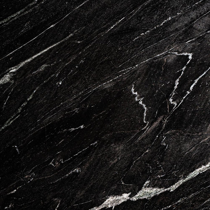Materiali Marmo nero naturale + gamba legno scuro