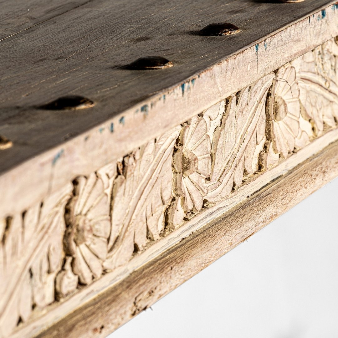 Questo tavolo non è solo un elemento funzionale per i pasti quotidiani ma diventa un centro di raccolta di momenti preziosi, di chiacchierate e di ricordi. È un pezzo che trasmette un senso di storia e che si integra armoniosamente in interni dallo spirito bohémien o in ambienti che vogliono omaggiare l'etnicità e la scoperta.