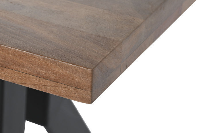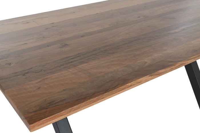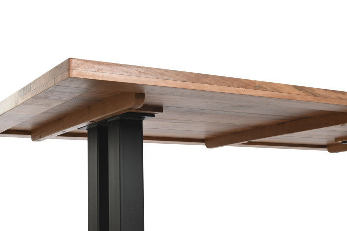Caratterizzato dallo stile industrial, questo tavolo offre un design moderno e robusto. Le gambe in metallo conferiscono stabilità, mentre il top in legno di gelso aggiunge un tocco di calore naturale. Perfetto per chi desidera un tavolo da pranzo dal carattere deciso, adatto sia a spazi contemporanei che rustici.