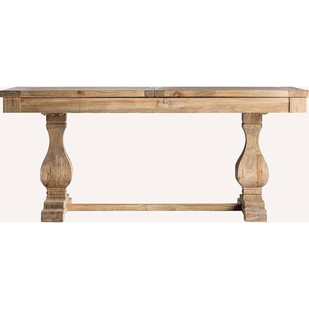 Cerchi un tavolo robusto e sostenibile con il calore del legno autentico? Questo tavolo in legno massiccio naturale è realizzato in olmo riciclato proveniente da antiche porte, per un arredo unico e carico di storia. Le leggere imperfezioni, i nodi e le venature raccontano la bellezza della lavorazione artigianale. Con dimensioni di 200 x 100 x H 78 cm, allungabile fino a 280 cm, offre ampio spazio per riunioni e cene conviviali. Il design classico provenzale si adatta ad ambienti rustici o eleganti, combinando estetica e funzionalità. Con un peso di 103 kg e un piano spesso 3,5 cm, garantisce stabilità e lunga durata. Online dal 2011, Ethnic Chic propone mobili artigianali di qualità con sconti fino al 70% e assistenza italiana.