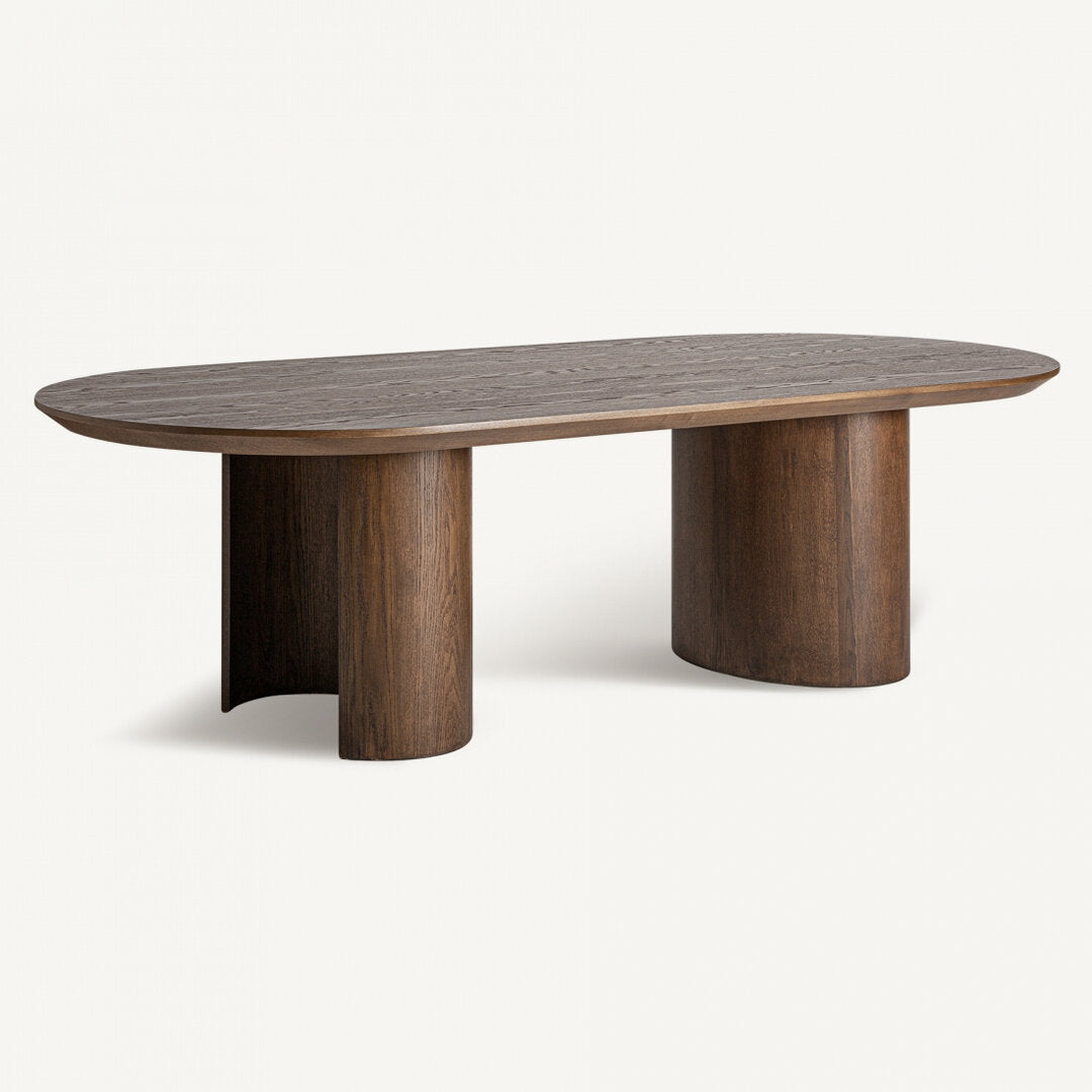 Il tavolo living art déco è una vera e propria opera d'arte, realizzato in legno massello di rovere marrone, che porta con sé un'eleganza senza tempo. Le dimensioni generose di 270 x 120 cm e un'altezza di 75 cm lo rendono perfetto per ospitare fino a 10 persone. Il peso di 80,8 kg assicura una solida struttura, mentre le misure delle gambe (48 x 70 x 69 cm) e la distanza tra le gambe (80 cm) garantiscono una buona stabilità e comodità. La finitura artigianale, con uno spessore del piano di 6 cm, valorizza ogni imperfezione naturale del legno, come crepe, nodi e segni, rendendo ogni pezzo unico. Le gambe sono smontabili per una facile gestione durante il trasporto. Questo tavolo, prodotto con produzione artigianale, è l'ideale per chi cerca un tavolo living online che unisca eleganza e funzionalità in uno stile concettuale.