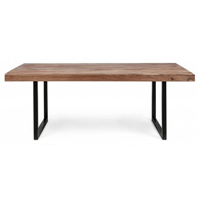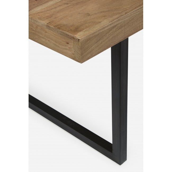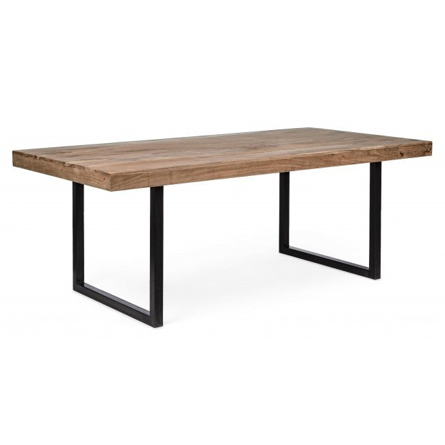 Tavolo New Industrial naturale di 200 cm con piano in legno massello di acacia e gambe in acciaio robusto. Design fisso, non estendibile, misura 200 x 100 x H 77 cm. Perfetto per chi cerca un tavolo vintage dal carattere deciso a un prezzo imperdibile.