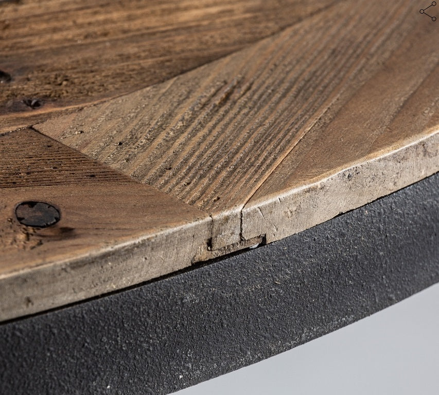 Tavolo Industriale Rotondo - Legno di Pino Riciclato
