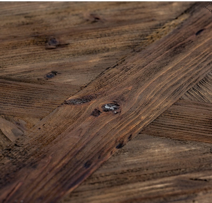 Il tavolo è realizzato in resistente legno di pino riciclato, che non solo garantisce la durabilità ma anche un'impronta ecologica positiva. La base in ferro nero conferisce un tocco industriale e contribuisce a stabilizzare il tavolo in modo sicuro.