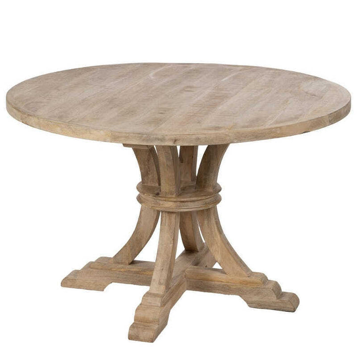 Realizzato in legno massello di mango dal colore naturale, questo tavolo tondo rappresenta una scelta perfetta per uno stile d'arredamento etnico chic e coloniale. Le sue linee eleganti e la gamba centrale lo rendono ideale per creare un'atmosfera accogliente e raffinata. Il legno di mango offre una superficie dal carattere unico grazie alla lavorazione manuale, con doghe che possono presentare irregolarità naturali, aggiungendo autenticità e fascino al design. Questo tavolo si adatta perfettamente anche agli ambienti provenzali e si distingue per la qualità dei materiali e l'attenzione ai dettagli.
