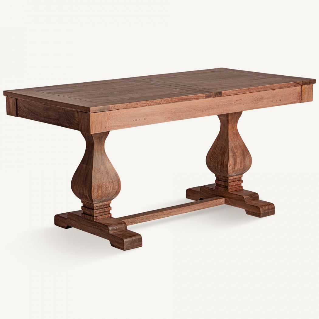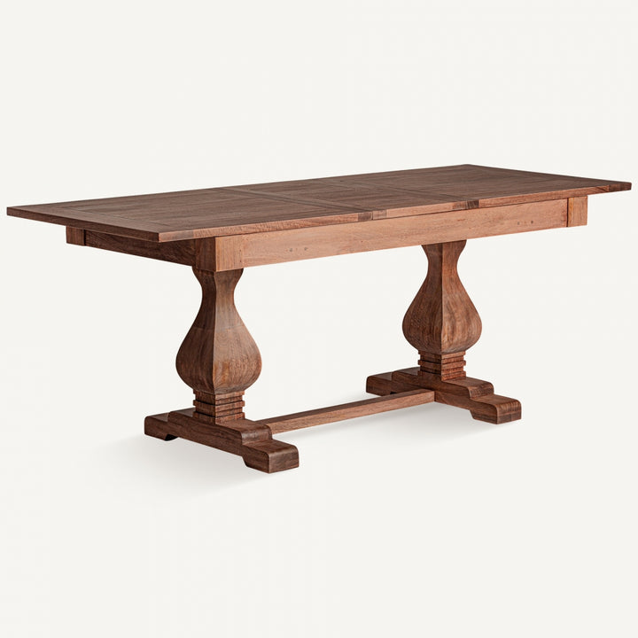 Lo stile francese chic si caratterizza per l'eleganza senza tempo e i dettagli raffinati, perfetti per arredare una sala da pranzo accogliente e sofisticata. Questo stile, con richiami coloniali e tonalità naturali, valorizza la bellezza autentica del legno massello di mango. Questo tavolo da pranzo allungabile è un esempio di funzionalità e design. Realizzato in legno di mango, offre un piano estensibile che passa da 200 cm a 250 cm, perfetto per ospitare fino a 8 persone durante cene conviviali o eventi speciali. Con uno spessore del piano di 2,6 cm e gambe robuste smontabili, il tavolo garantisce stabilità e praticità, supportando un peso massimo di 60 kg. Il design staccabile facilita il trasporto e l’installazione. Questo tavolo coloniale è la scelta ideale per chi cerca un arredo unico e funzionale. Acquista online per trasformare la tua sala da pranzo in un ambiente di charme e qualità.