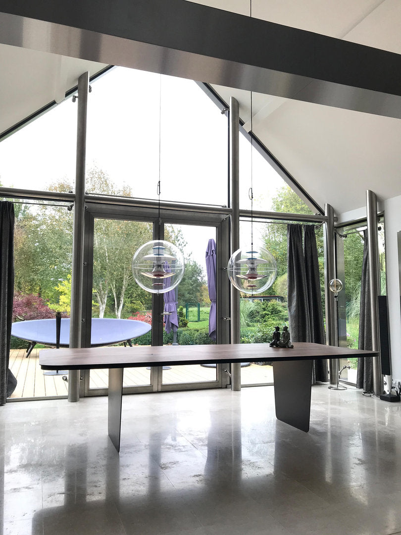 Tavolo in legno massello (noce americano) e fibra di carbonio per pranzo o ufficio