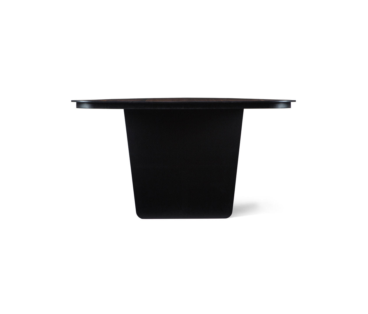 Leggero alla vista, robusto nella struttura. Il tavolo CARBON CLARO è caratterizzato da un prezioso piano in noce massello carbonizzato abbinato a sottili gambe in fibra di carbonio. I due elementi si collegano senza soluzione di continuità in un movimento continuo, creando una fusione complessa ma logica che rende il tavolo molto stabile ma leggero, perfetto per uffici direzionali o sale da pranzo private dove le cose accadono e i pensieri sembrano elegantemente chiari.