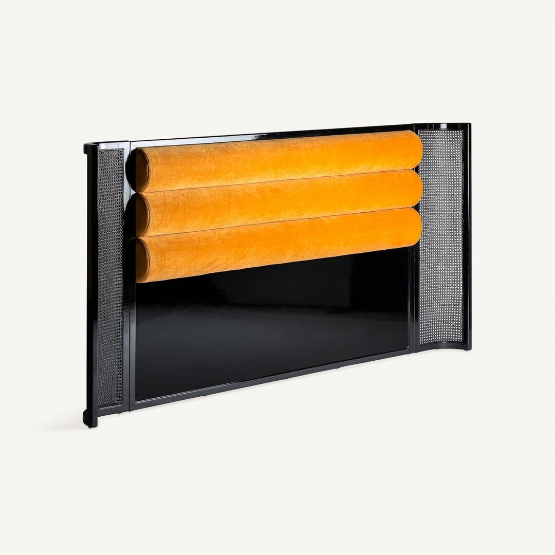 Questa testata letto nera chic si ispira al raffinato stile art déco, combinando design elegante e materiali naturali. Perfetta per aggiungere un tocco di classe alla tua camera da letto, si distingue per il suo equilibrio tra estetica e funzionalità. Realizzata in legno di pino, noto per la sua resistenza, e arricchita da dettagli in rattan naturale, questa testata offre una combinazione unica di calore e raffinatezza. La tonalità nera dona un look sofisticato, ideale per ambienti moderni o classici. Un complemento d'arredo leggero ma resistente, che si adatta perfettamente a letti matrimoniali e valorizza qualsiasi spazio con il suo design esclusivo.