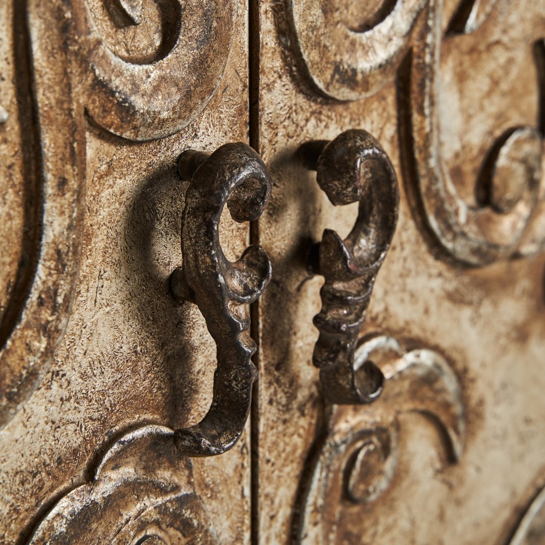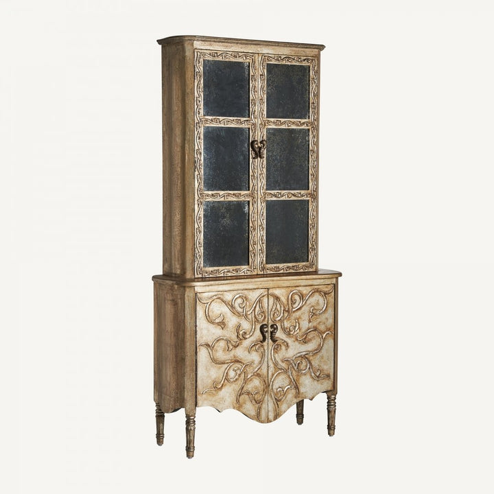 Un dettaglio distintivo della vetrina sono i 6 specchiati jaspeado presenti su due delle porte, aggiungendo un tocco di stile e un elemento decorativo.